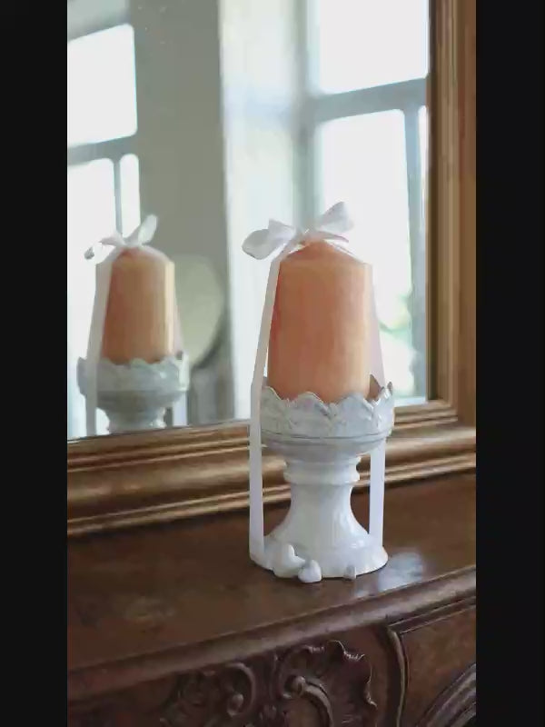 This kit includes: a large candle handcrafted in the south of France using an ancestral process, its natural color will adapt to all your interiors, its flame is bright and vibrant. A large ceramic Crown candlestick on a stand, which can also be used as a support to present other objects, or to place your jewelry or small items. Three charming heart-shaped candle pins as a message of love that you can simply pin into any candle, but can also be used as pins on your bags, cases, jackets, etc.